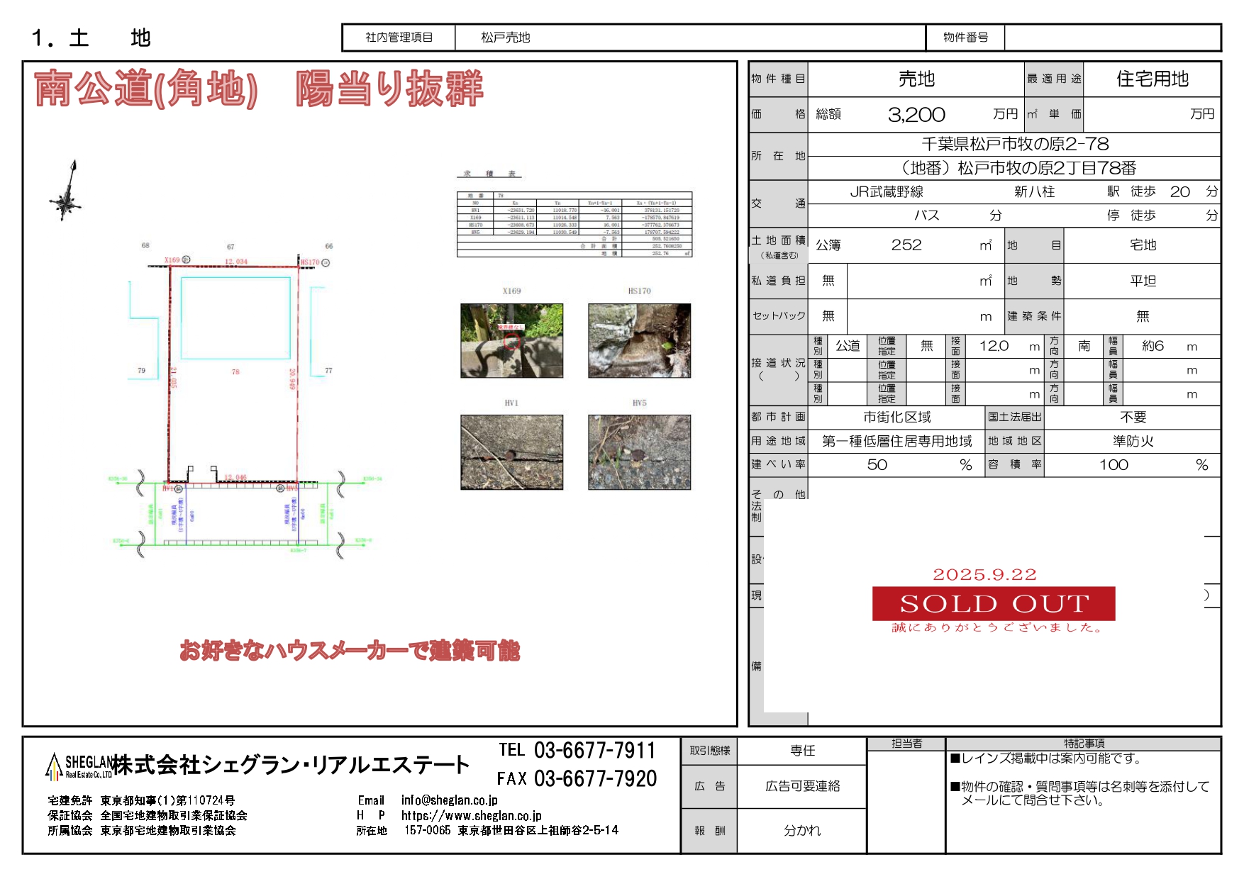 2025年9月 松戸 〜売地:3200万〜 の2025.9.22売却成立