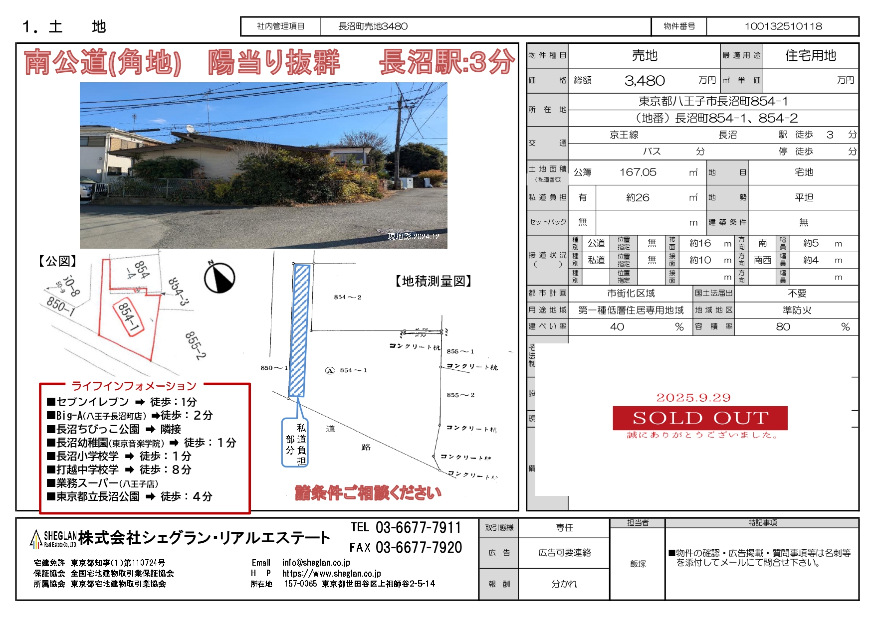 2025年9月 八王子 〜売地:3480万〜 の2025.9.29売却成立